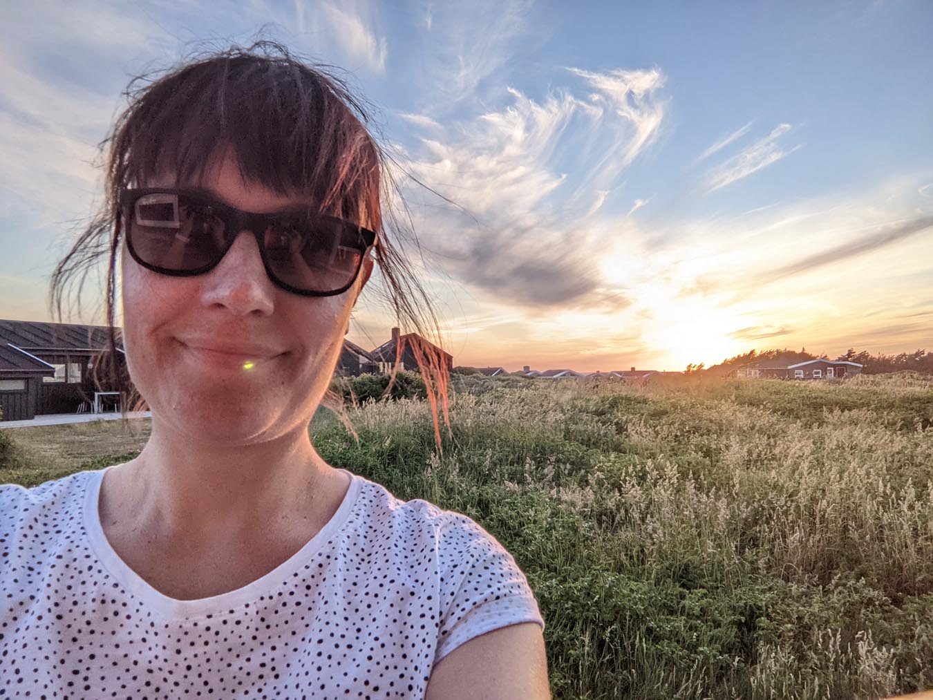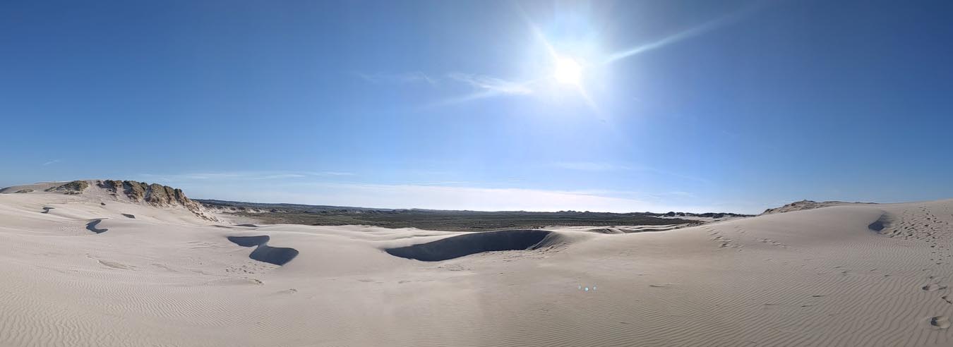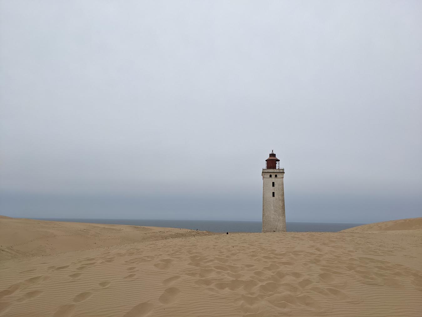 Kurz nach Skagen sind wir dann zur „Råbjerg Mile“ abgebogen. Dies ist eine Wanderdüne, die sich sehr weit erstreckt und in der Mitte erscheint es einem wirklich, als wäre man in der Sahara, allerdings mit angenehmen Meereswind um die Nase und bei moderaten Temperaturen. Die Sandmassen erreichen Höhen von über 40 Metern und bedecken eine Fläche von etwa 120 ha. Barfuß ging es hoch und runter bis zum Ende der Düne, schließlich wollten wir einen Überblick bekommen und sehen, wie groß sie insgesamt ist. Der Sand ist unglaublich fein und jeder Schritt kostet extra Kraft, insbesondere bergauf. Dafür ist es bergab umso schöner. Diese Düne ist definitiv ein ganz besonderes Erlebnis. Wir hatten besonders Glück, da wir erst gegen 19 Uhr dort waren und entsprechend kaum andere Menschen zu sehen waren. Abends im Häuschen hatten wir dann nochmal einen super schönen Sonnenuntergang.