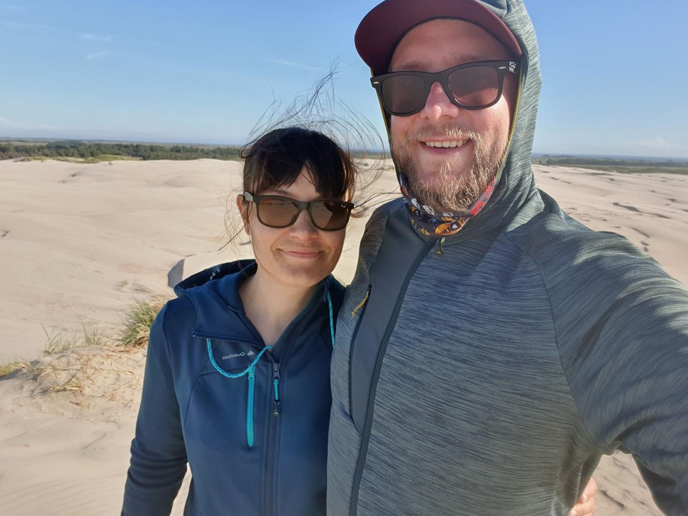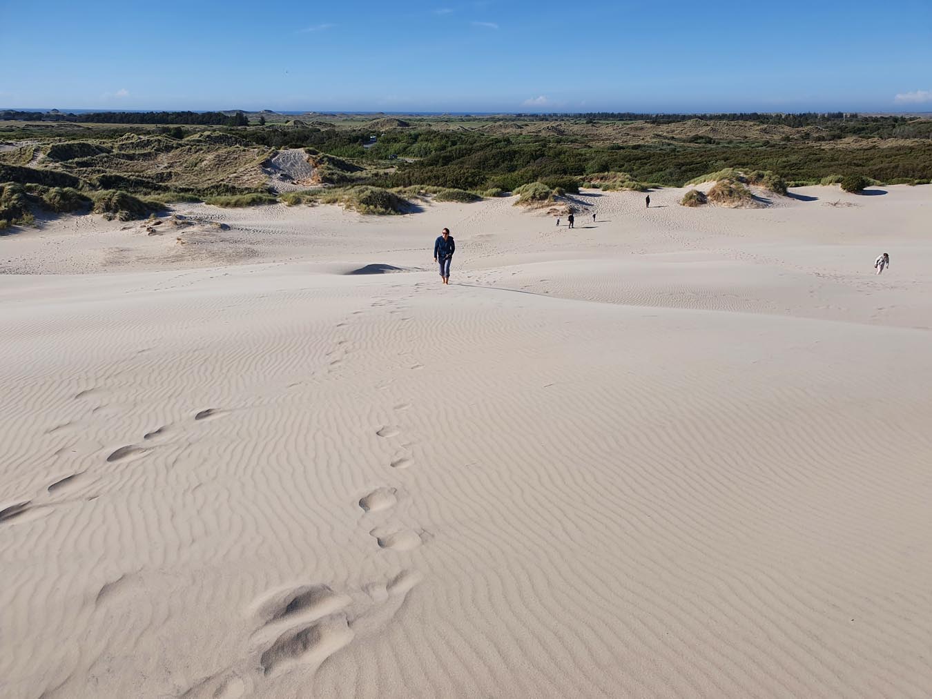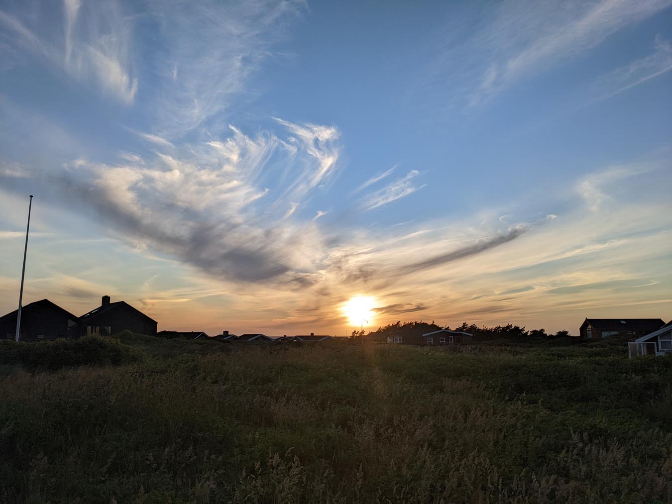 Kurz nach Skagen sind wir dann zur „Råbjerg Mile“ abgebogen. Dies ist eine Wanderdüne, die sich sehr weit erstreckt und in der Mitte erscheint es einem wirklich, als wäre man in der Sahara, allerdings mit angenehmen Meereswind um die Nase und bei moderaten Temperaturen. Die Sandmassen erreichen Höhen von über 40 Metern und bedecken eine Fläche von etwa 120 ha. Barfuß ging es hoch und runter bis zum Ende der Düne, schließlich wollten wir einen Überblick bekommen und sehen, wie groß sie insgesamt ist. Der Sand ist unglaublich fein und jeder Schritt kostet extra Kraft, insbesondere bergauf. Dafür ist es bergab umso schöner. Diese Düne ist definitiv ein ganz besonderes Erlebnis. Wir hatten besonders Glück, da wir erst gegen 19 Uhr dort waren und entsprechend kaum andere Menschen zu sehen waren. Abends im Häuschen hatten wir dann nochmal einen super schönen Sonnenuntergang.